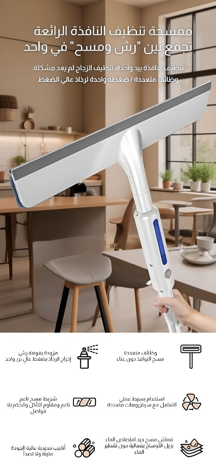 ممسحة تنظيف نافذة متعددة الوظائف مع رأسين المسح ووظيفة رش الماء